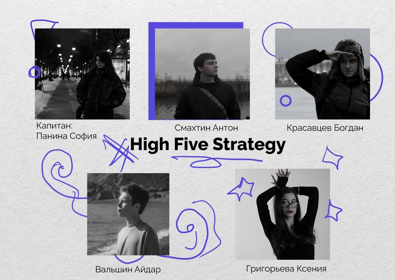В нашу дружную команду участников врываются те, кто готов дать пять и даже стратегию в придачу! Встречайте: «High Five Strategy» из Санкт-Петербургского государственного института кино и телевидения!