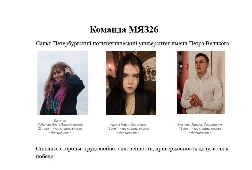 В нашу команду участников врываются те, кто только начинает свой путь в профессии, но уже готов громко заявить о себе! Знакомьтесь: МЯЗ из Санкт-Петербургского политехнического университета Петра Великого!